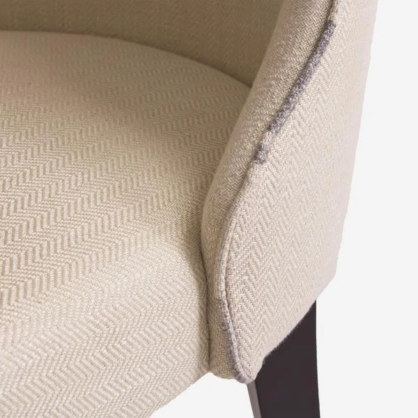 been upholstered in , a smart linen blend weave with subtle herringbone