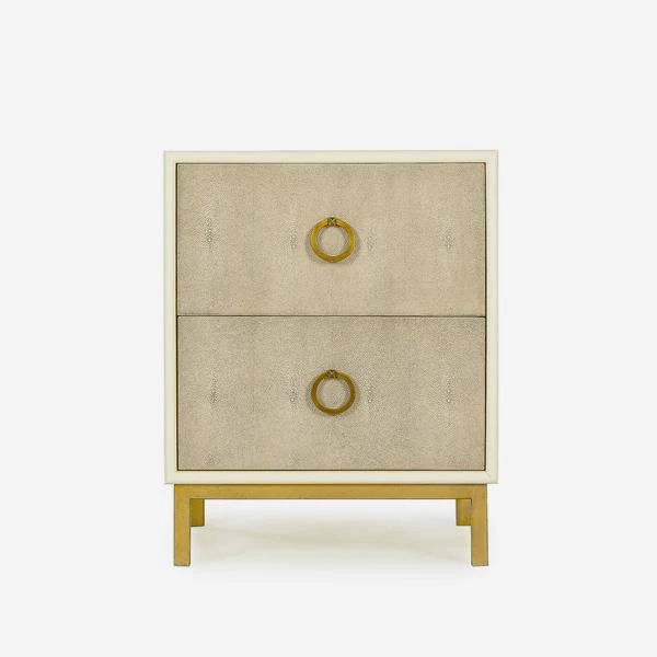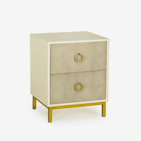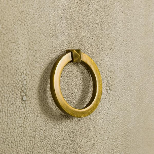 exquisitely compliments the neutral faux shagreen drawer fronts,