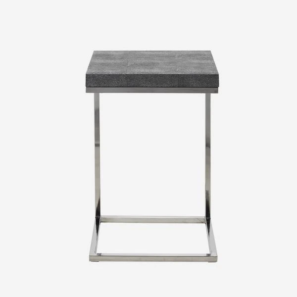 With sleek metallic legs and a gorgeous grey faux shagreen top