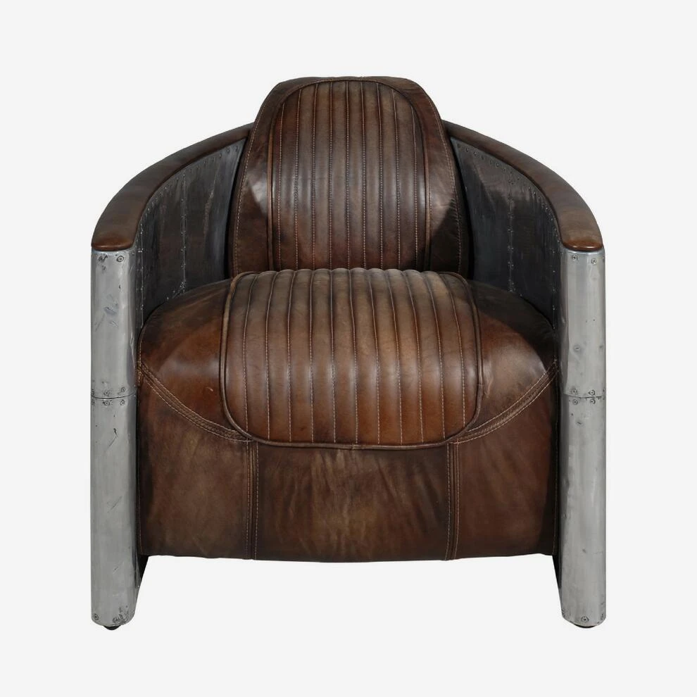 the 1970s. The chair’s aerodynamic curves are hugged in riveted