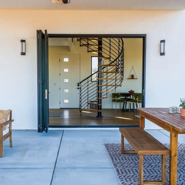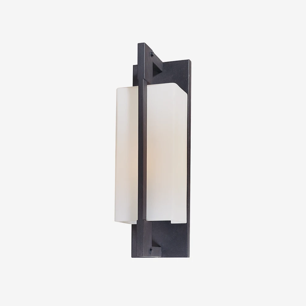 Featuring a black base and a matte opal shade in a cuboid shape,