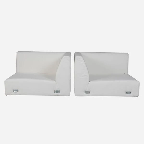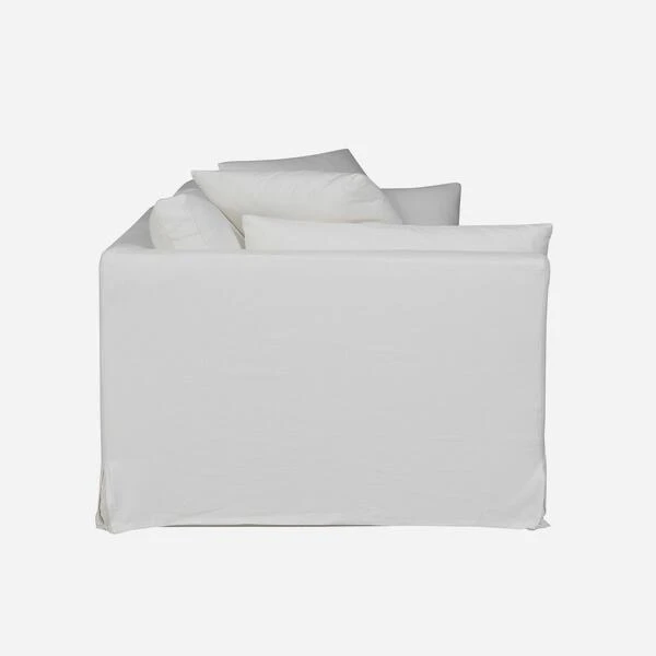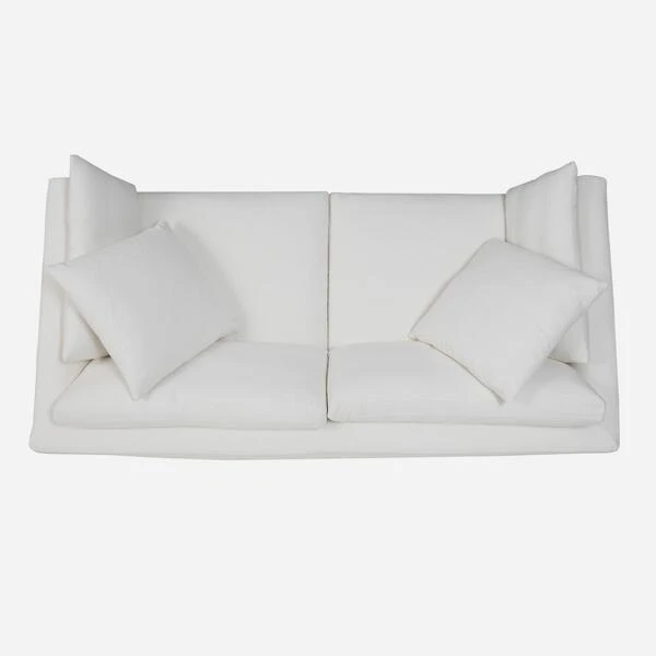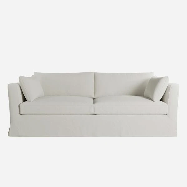 simple, modern shaped sofa with skirted base. Made in 2 pieces that