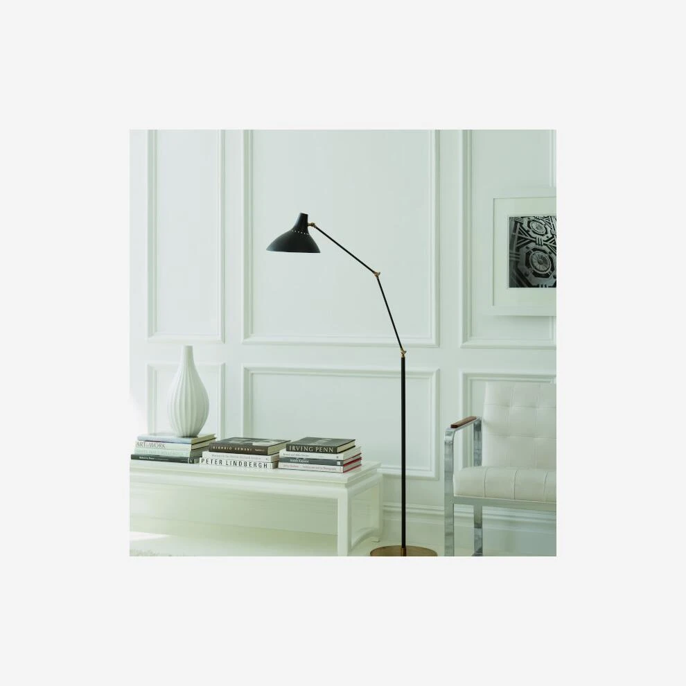 Charlton Floor Lamp, Black And Hand-Rubbed Antique Brass