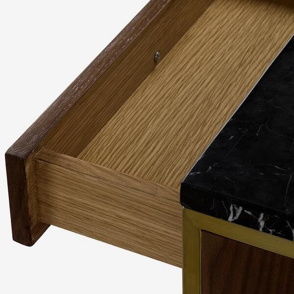 veneering, satin brass frame and black nero marquina marble