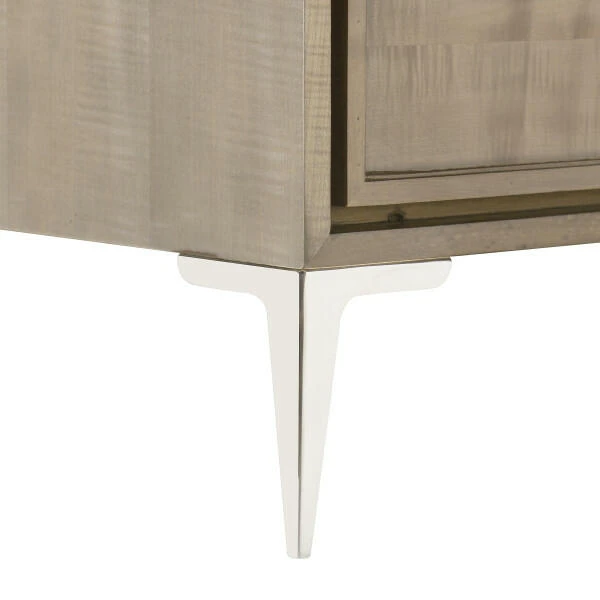 supported by elegant stainless-steel stiletto legs and polished