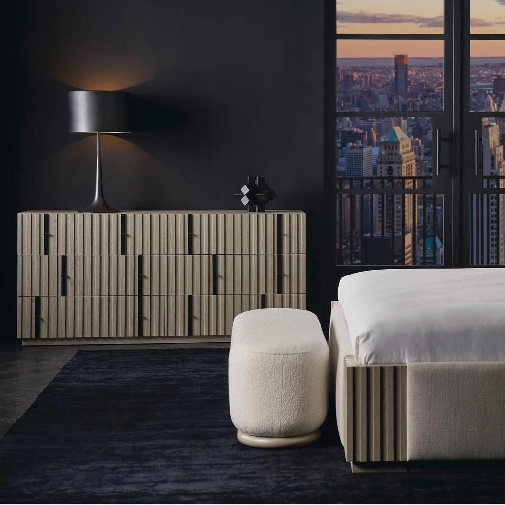Six drawer architectural wooden dresser by Kelly Hoppen