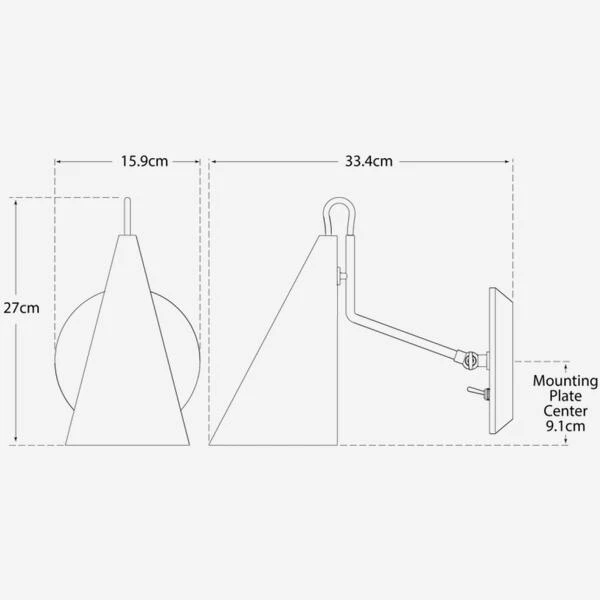 Conical shade wall light in brass by Aerin