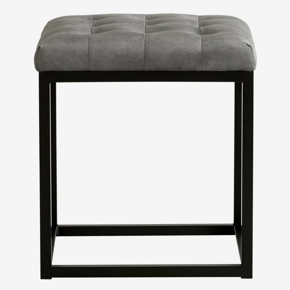 is upholstered in a luxuriously soft silver-grey buttoned velvet,