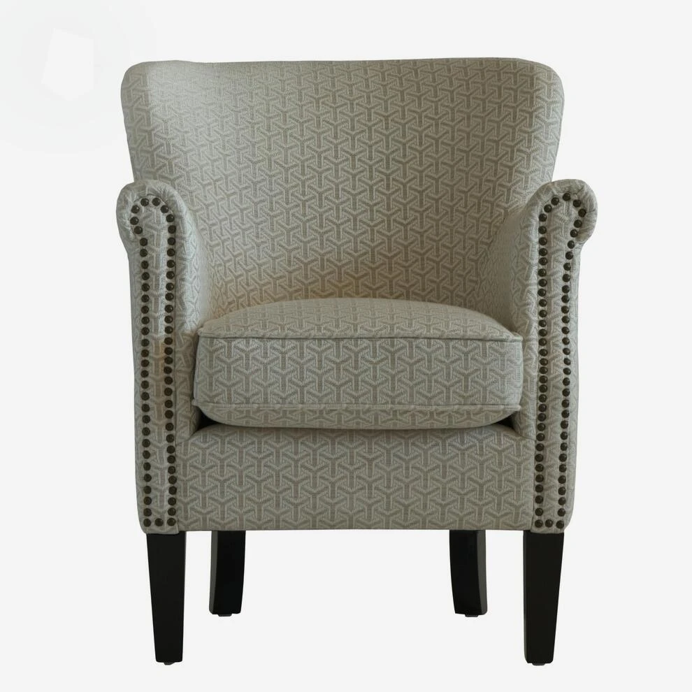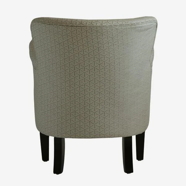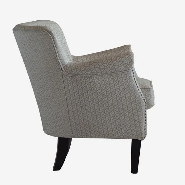 Small armchair upholstered in a neutral geometric fabric