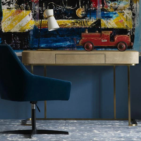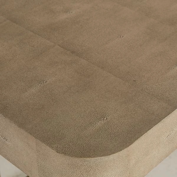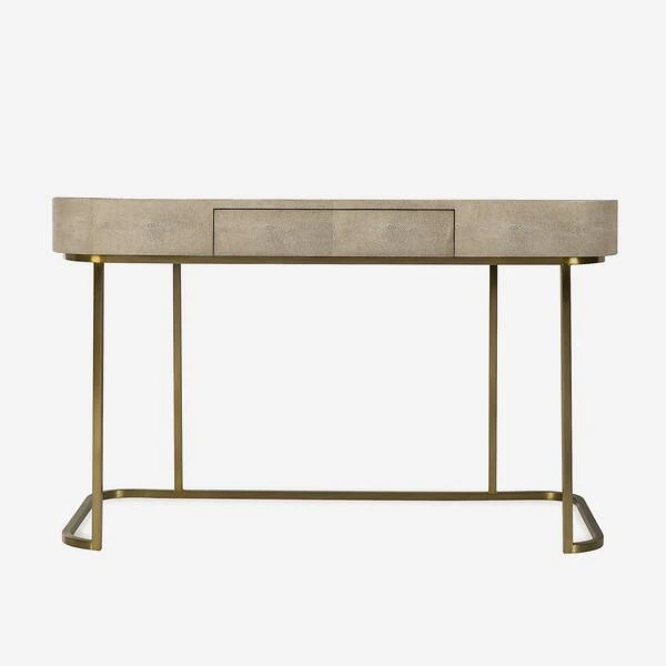 base and an elegant taupe faux shagreen top and a spacious drawer.