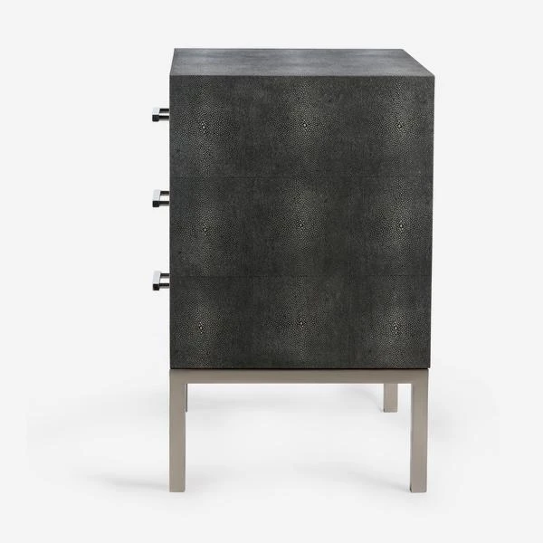 Jasper Side Chest boasts a classy faux shagreen finish in dark