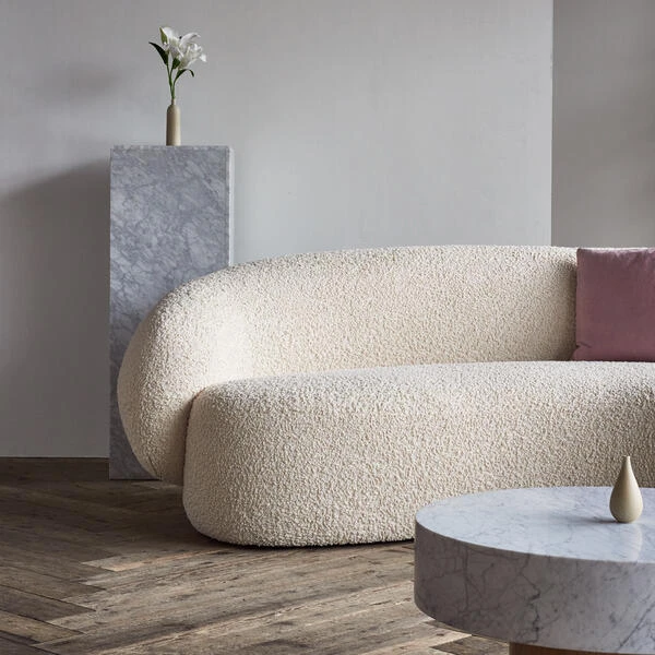 3-seater boucle curved sofa in ivory