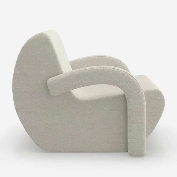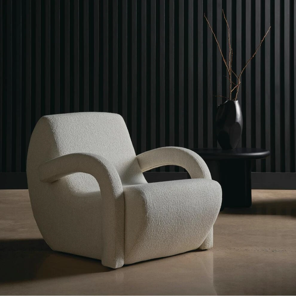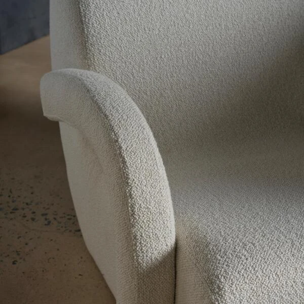 Curved accent chair in off-white bouclΓ© by Kelly Hoppen