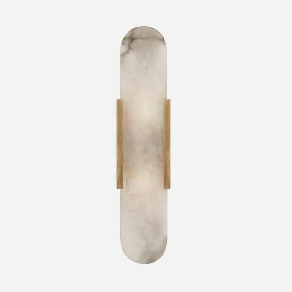 An elongated wall light affixed with antique-burnished brass and