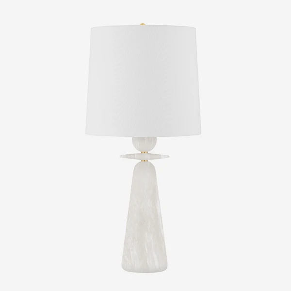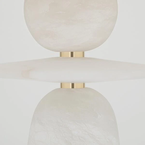 all-alabaster base is detailed with a disc and sphere right below