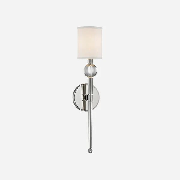 The Rockland wall lamp is topped by a soft white fabric shade
