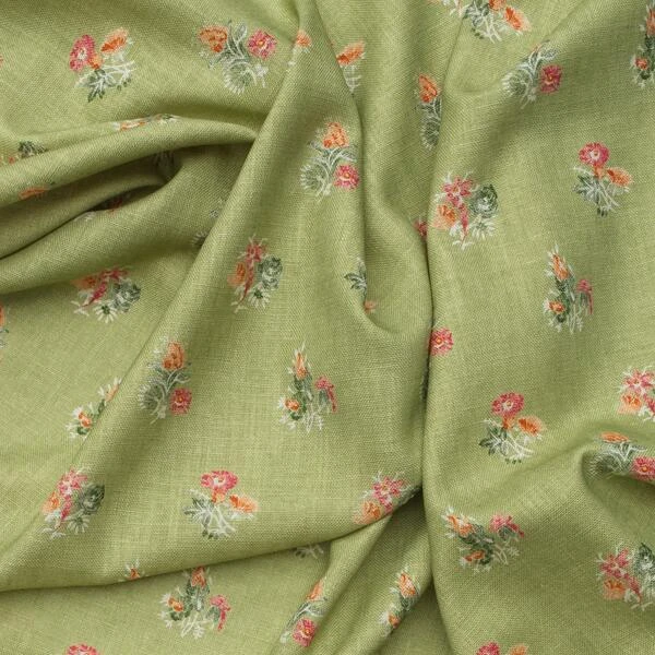 Floral fabric in leaf green