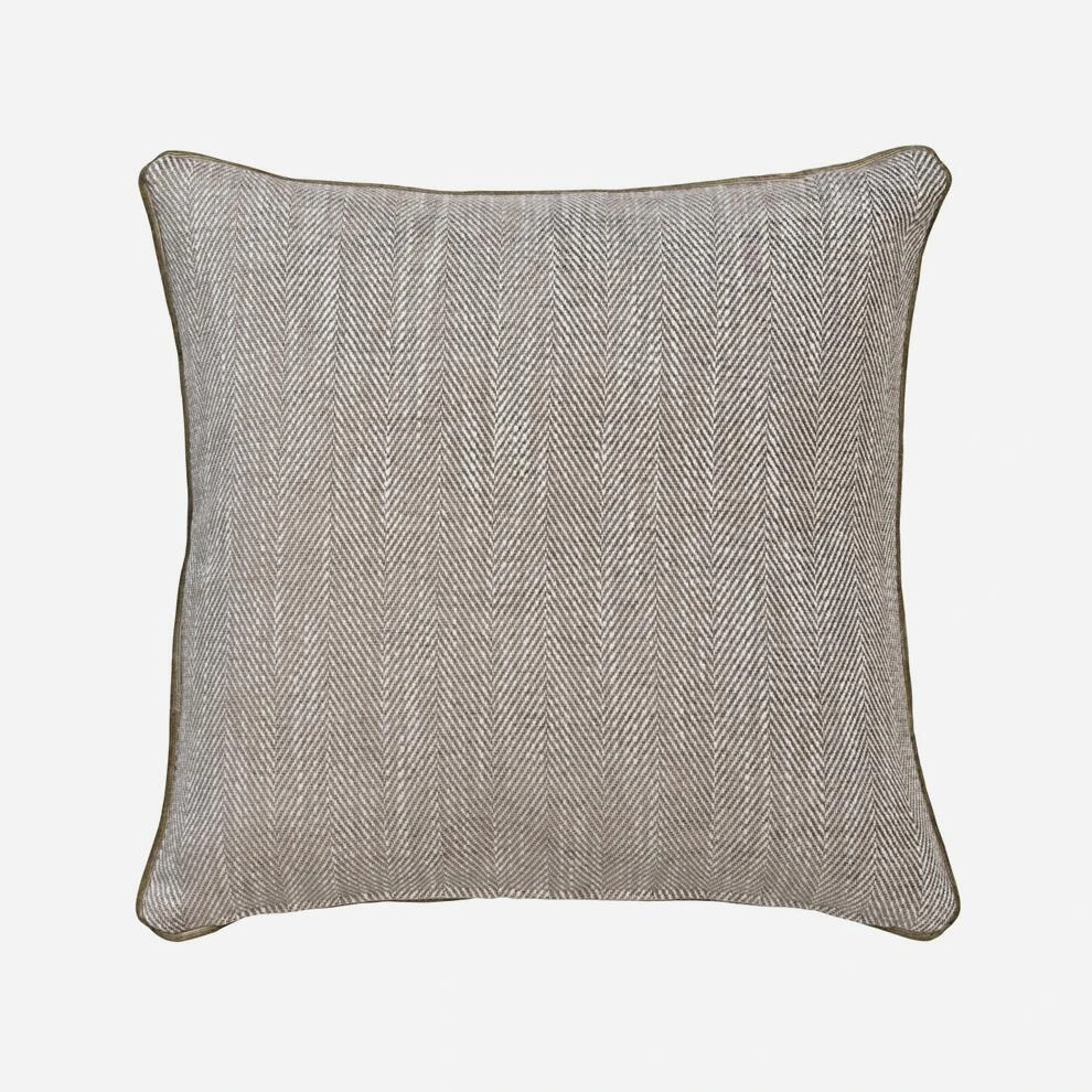 An exceptionally soft chenille cushion made from , a two-tone herringbone in smart taupe and white with