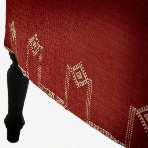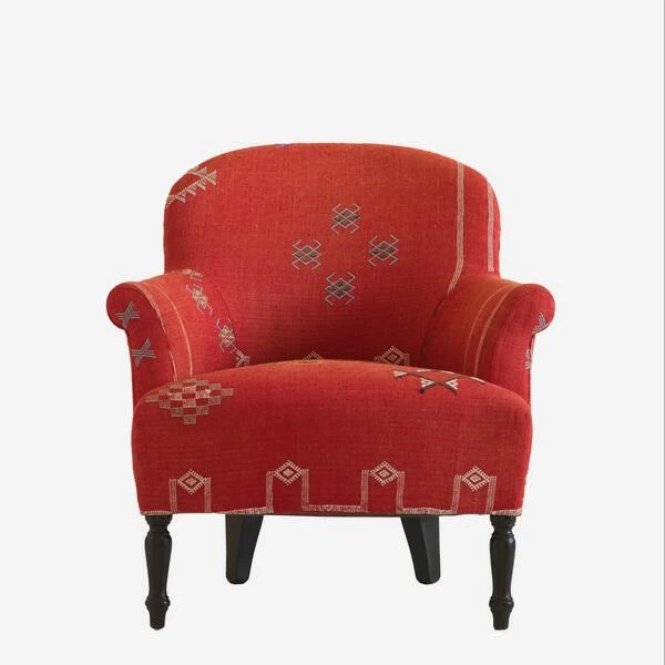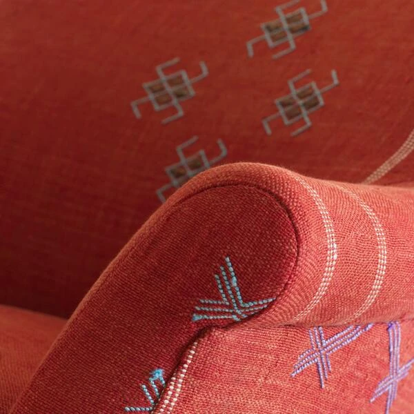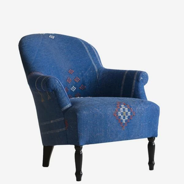 yellow, and blue, the fabric on these armchairs is handwoven by