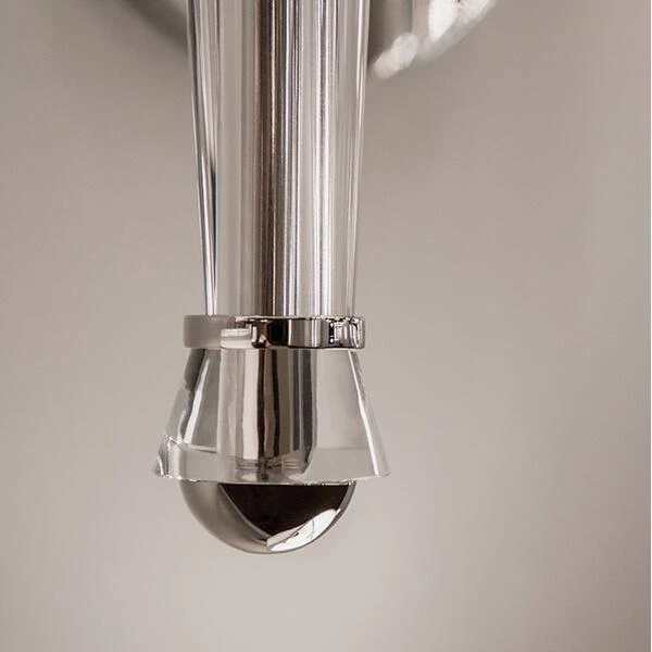 cylindrical shade sits atop a tapered crystal arm, all finished in